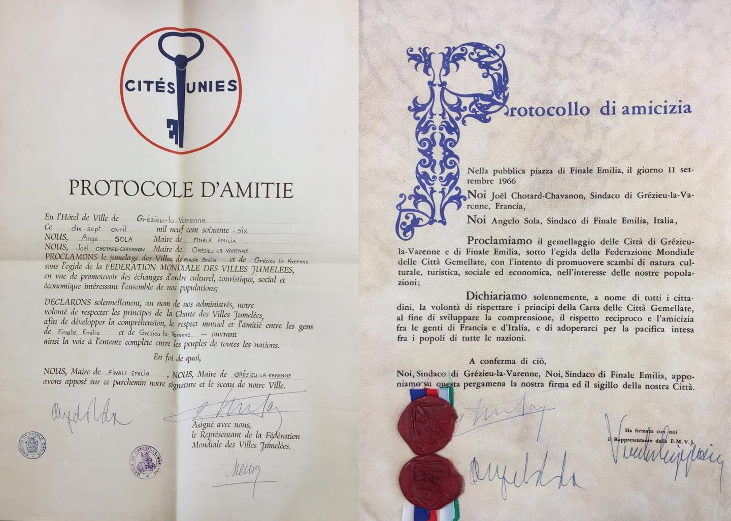 In occasione del 60° anniversario del gemellaggio tra i comuni di Finale Emilia e Grezieu La Varenne, siglato in Francia il 17’aprile 1966 e in Italia l’11 settembre dello stesso anno, una delegazione di cittadini finalesi si recherà presso la cittadina francese nel prossimo mese di giugno.