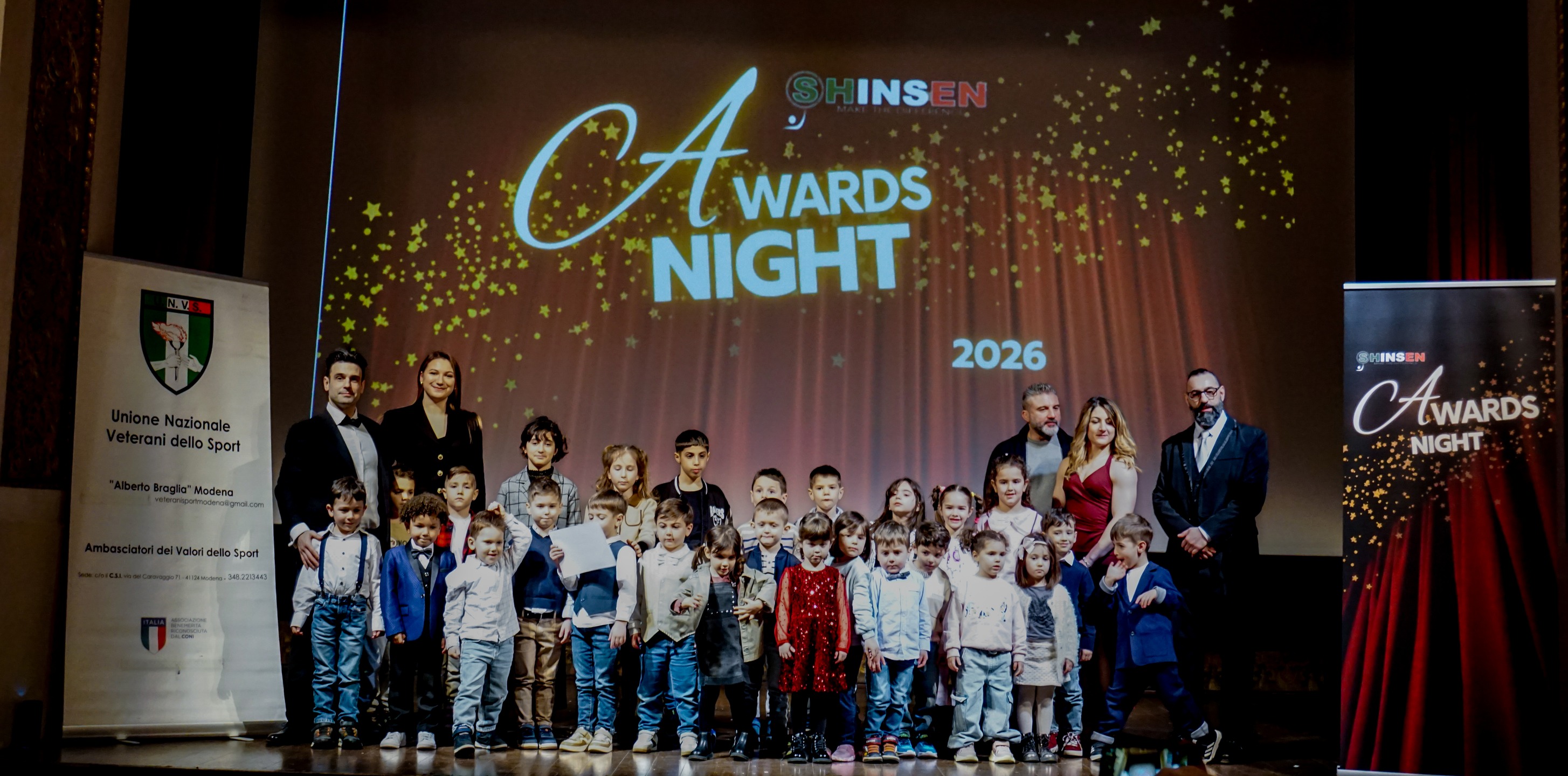Sabato 28 febbraio 2026, presso il Teatro Comunale “Alice Zeppilli” di Pieve di Cento, Shinsen Academy ha celebrato la Shinsen Awards Night 2026, evento - patrocinato anche dall'amministrazione comunale di Finale Emilia - che ogni anno riconosce il percorso di atleti che si sono distinti per impegno, costanza, partecipazione e risultati nel progetto di Ju Jitsu e arti marziali della Shinsen Academy.