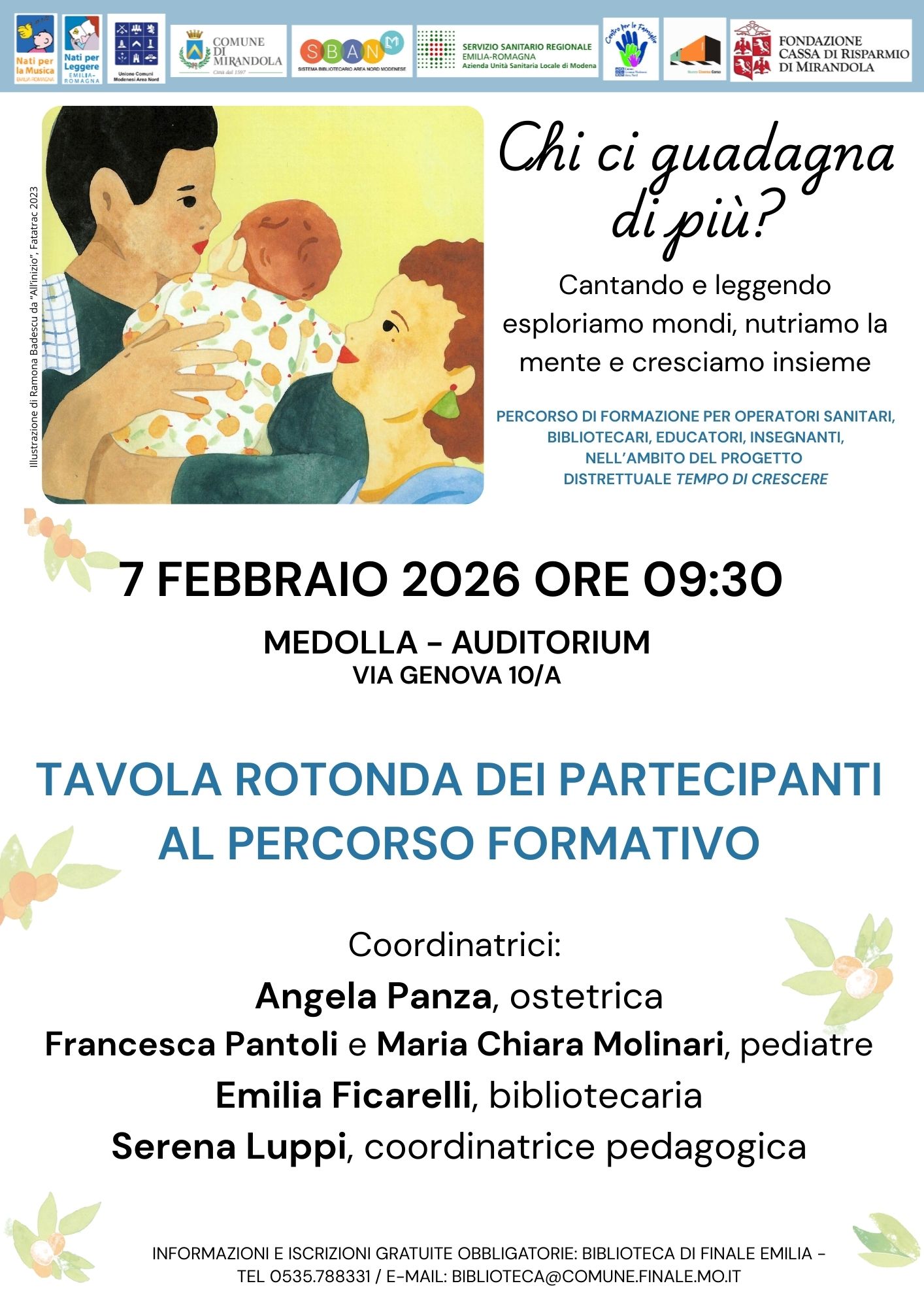 Coordinatrici: Angela Panza, ostetrica. Francesca Pantoli e Maria Chiara Molinari, pediatre. Emilia Ficarelli, bibliotecaria. Serena Luppi, coordinatrice pedagogica.