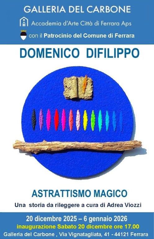 Sabato 20 dicembre 2025, alle ore 17.00, si terrà il vernissage della mostra dell'artista finalese Domenico Difilippo, alla Galleria del Carbone, in via Vignatagliata, 41, a Ferrara.