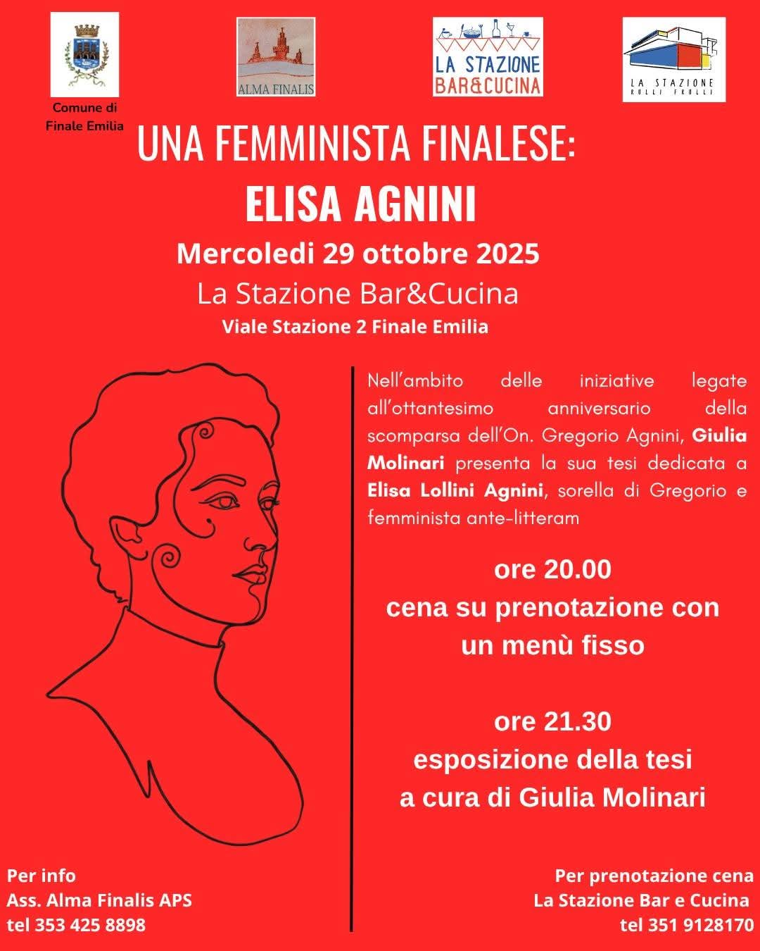 Nell'ambito delle inziative che ricordano il senatore Gregorio Agnini in occasione dell'80° anniversario della scomparsa, mercoledì 29 ottobre, alle ore 21.30, alla Stazione Rulli Frulli, Giulia Molinari presenta la sua tesi dedicata ad Elisa Agnini Lollini, sorella di Gregorio e femminista ante-litteram.