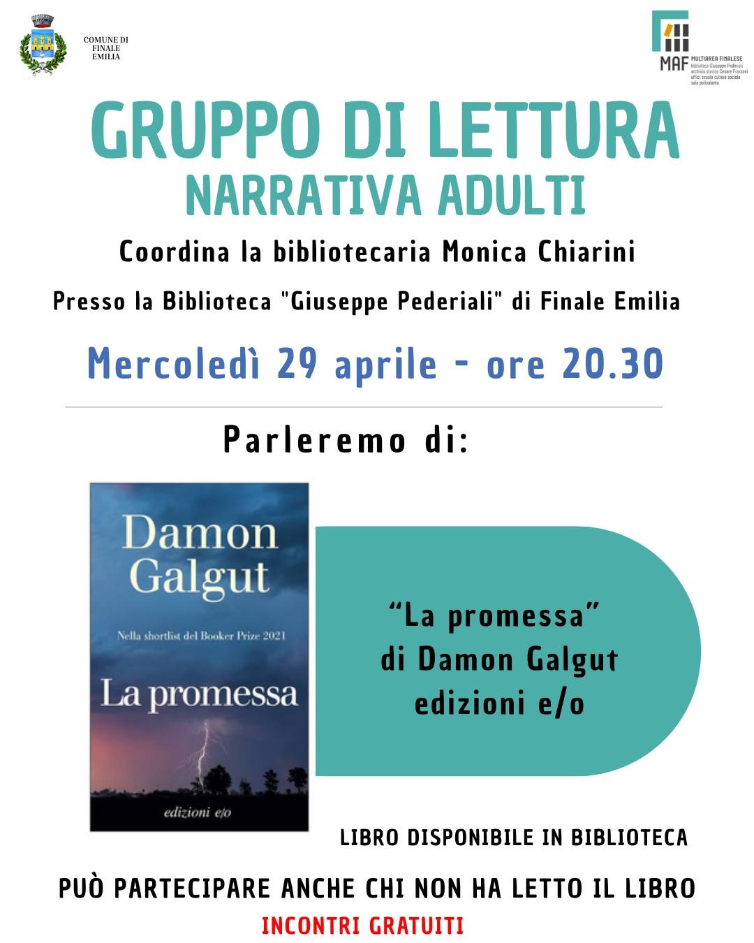 Nuovo appuntamento per il gruppo di lettura narrativa per adulti coordinato dalla bibliotecaria Monica Chiarini. Appuntamento presso la Biblioteca G. Pederiali di Finale Emilia, mercoledì 29 aprile alle ore 20.30.