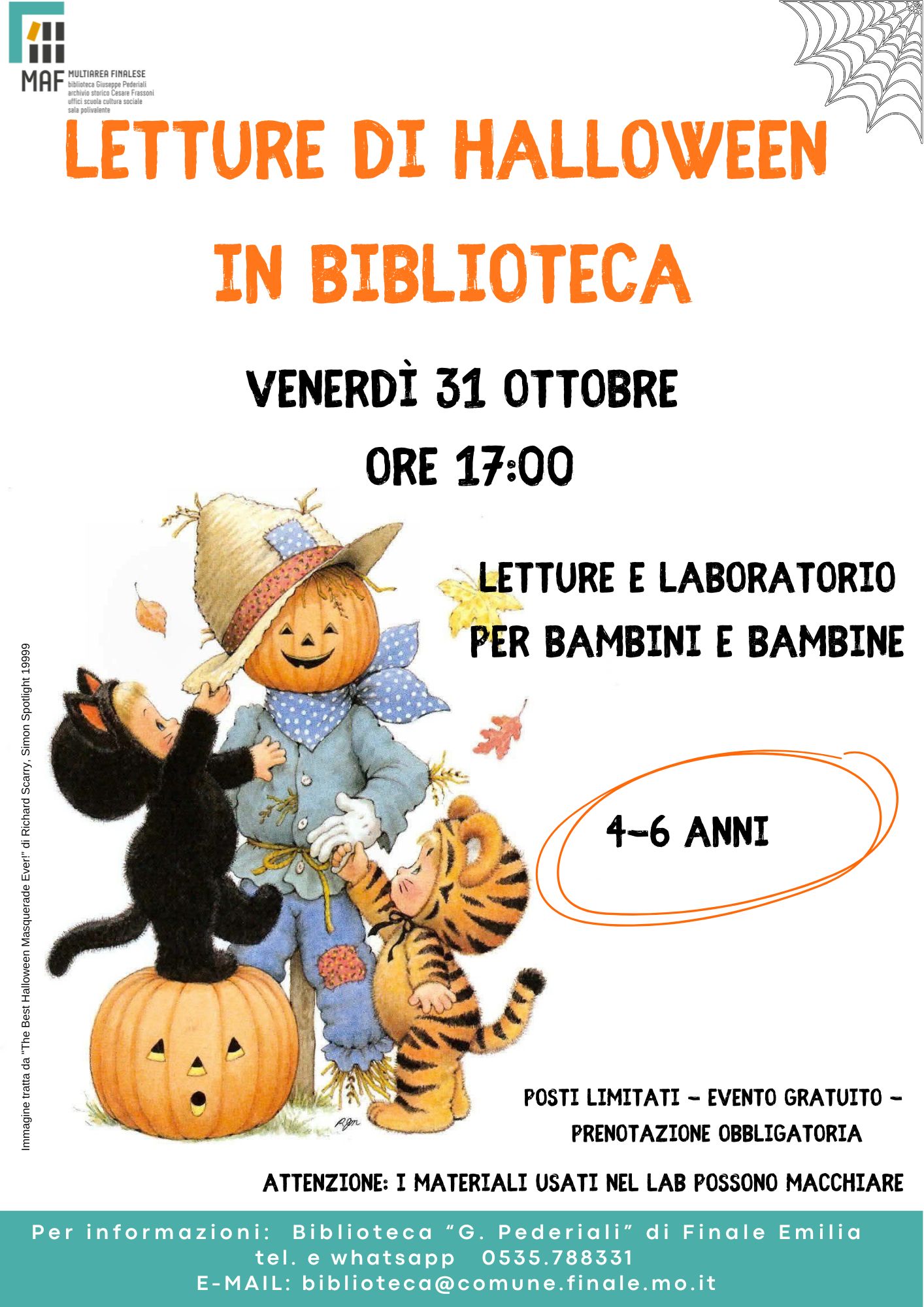 Arrivano le letture di Halloween alla Biblioteca Pederiali. Venerdì 31 ottobre, alle ore 17.00, letture e laboratorio per bambine e bambini dai 4 ai 6 anni.