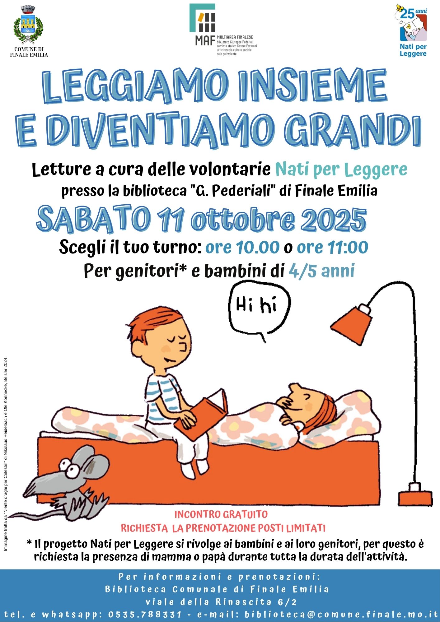 Biblioteca Comunale di Finale Emilia viale della Rinascita 6/2tel. e whatsapp: 0535.788331