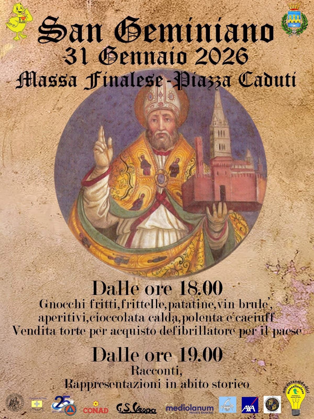 In occasione della festa patronale di San Geminiano, sabato 31 gennaio, Piazza Caduti per la Libertà a Massa Finalese (MO) ospiterà una serata organizzata dal Comitato Commercianti e Attività Produttive di Massa Finalese, in collaborazione con GS Vespa Massa, Protezione Civile Finale Emilia, Conestabili del Finale e Artinsieme