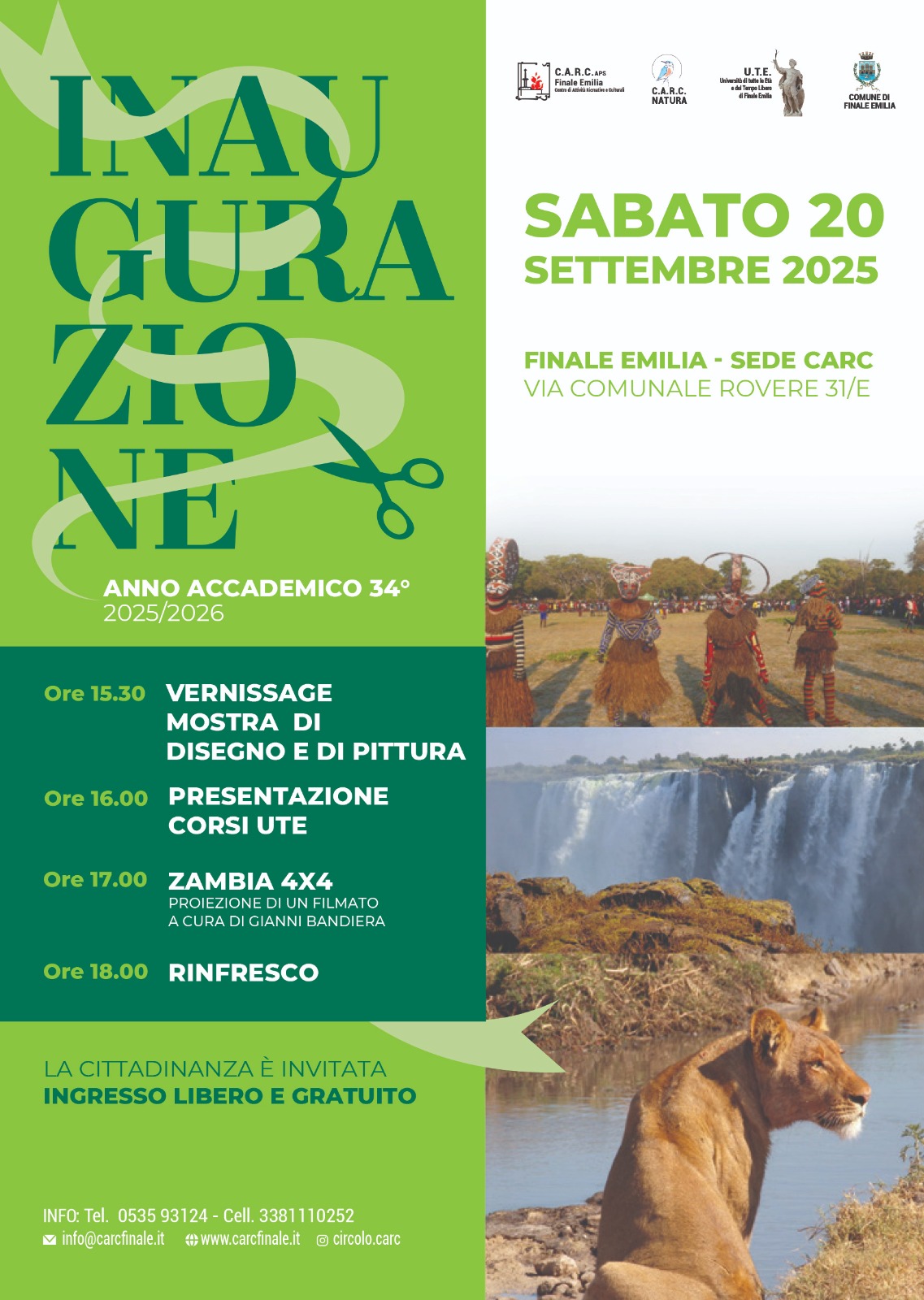 L'evento inizierà alle 15.30 con l'inaugurazione della mostra di disegno e pittura. Alle 16.00 la presentazione dei corsi e a seguire la proiezione del video "Zambia 4x4", a cura di Gianni Bandiera. Al termine rinfresco.