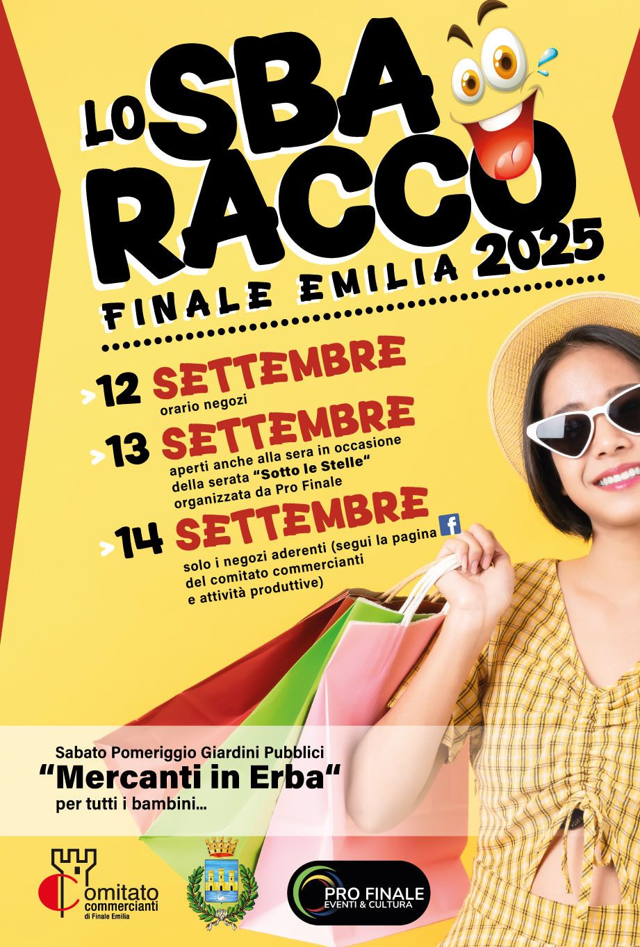 Sbaracco di fine estate nei negozi del centro storico di Finale Emilia da venerdì 12 a domenica 14 settembre, promosso dal Comitato Commercianti e Attività Produttive. L'iniziativa si affianca e supporta gli eventi "Mercanti in erba", mercatino per i bambini e la serata "Sotto le Stelle" in programma sabato 13 settembre.