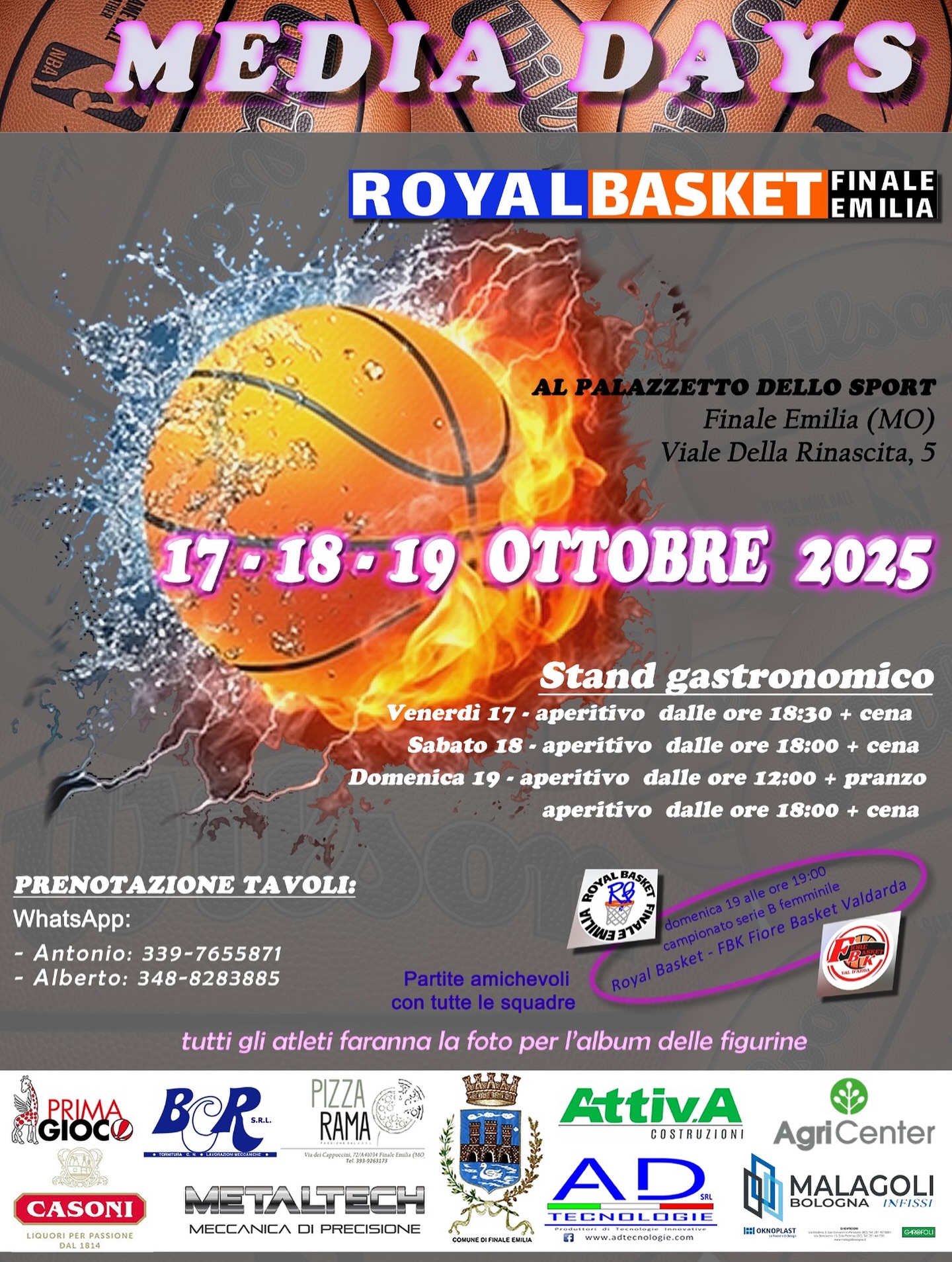 Dal 17 al 19 ottobre, tre giorni di partite amichevoli per tutte le formazioni, foto ufficiali per l’album delle figurine e sfida di serie B femminile, domenica alle ore 19.00, tra Royal Basket e FBK Valdarida.